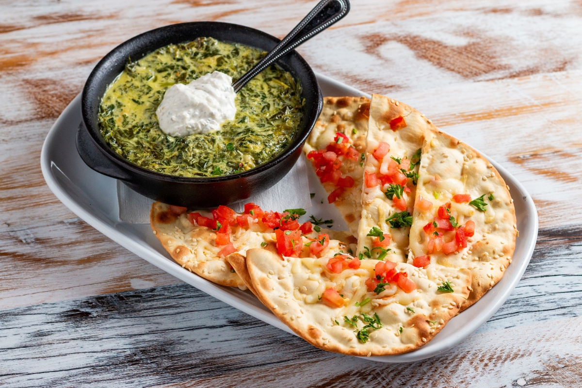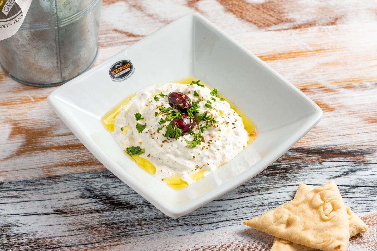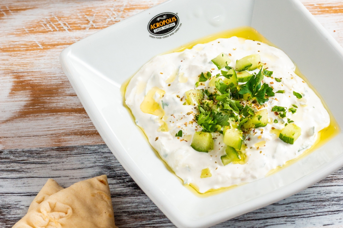 Greek yogurt with freshly grated cucumbers, garlic and mediterranean herbs, drizzled with extra virgin olive oil. Served with fresh pita.