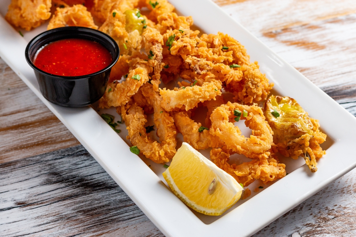 Hand breaded squid and tentacles, pepperoncini lightly fried and served with savory tomato sauce.