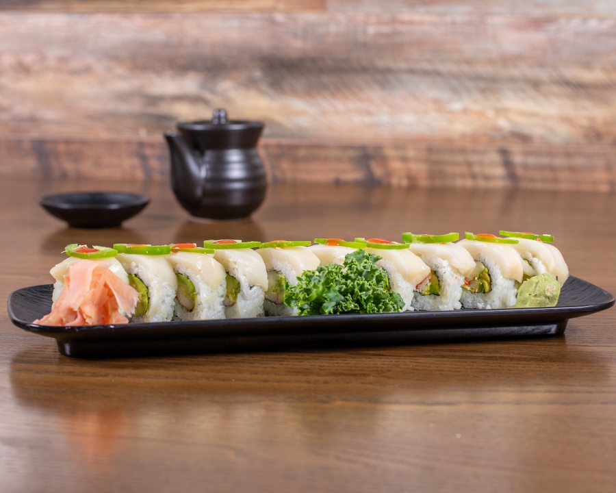 Yellowtail, cucumber, topped with jalapeño and spicy mayo