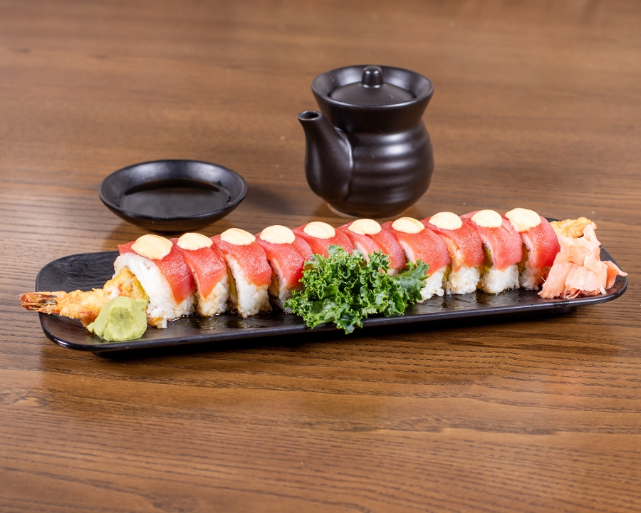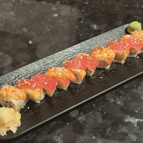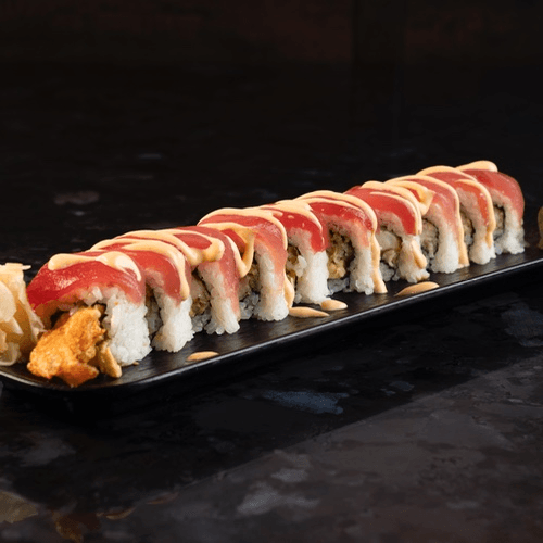 Crunchy spicy tuna roll topped with fresh sliced tuna and housemade DP sauce.