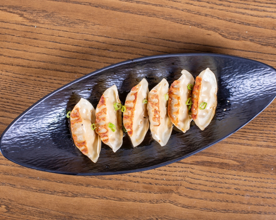 Pork and vegetable dumplings served with a housemade savory sauce.