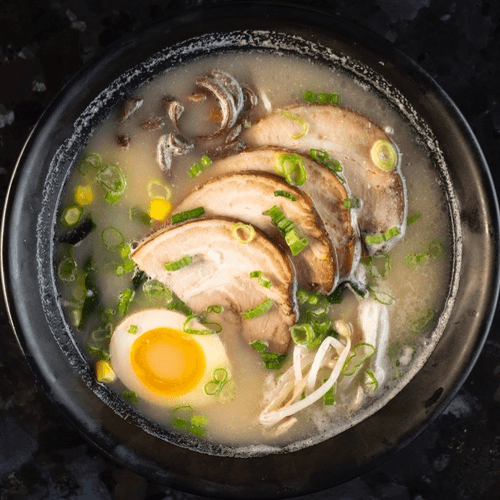 Housemade rich and creamy pork broth with tender chashu pork, ramen noodles, soft boiled egg, green onion, corn, spring sprouts and nori.