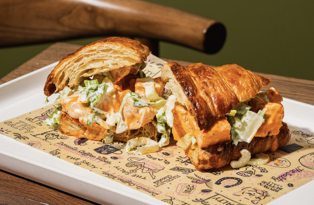 Toasted croissant, sous vide organic chicken tossed in housemade buffalo sauce and topped with a ranch slaw of romaine, celery, and green onions.