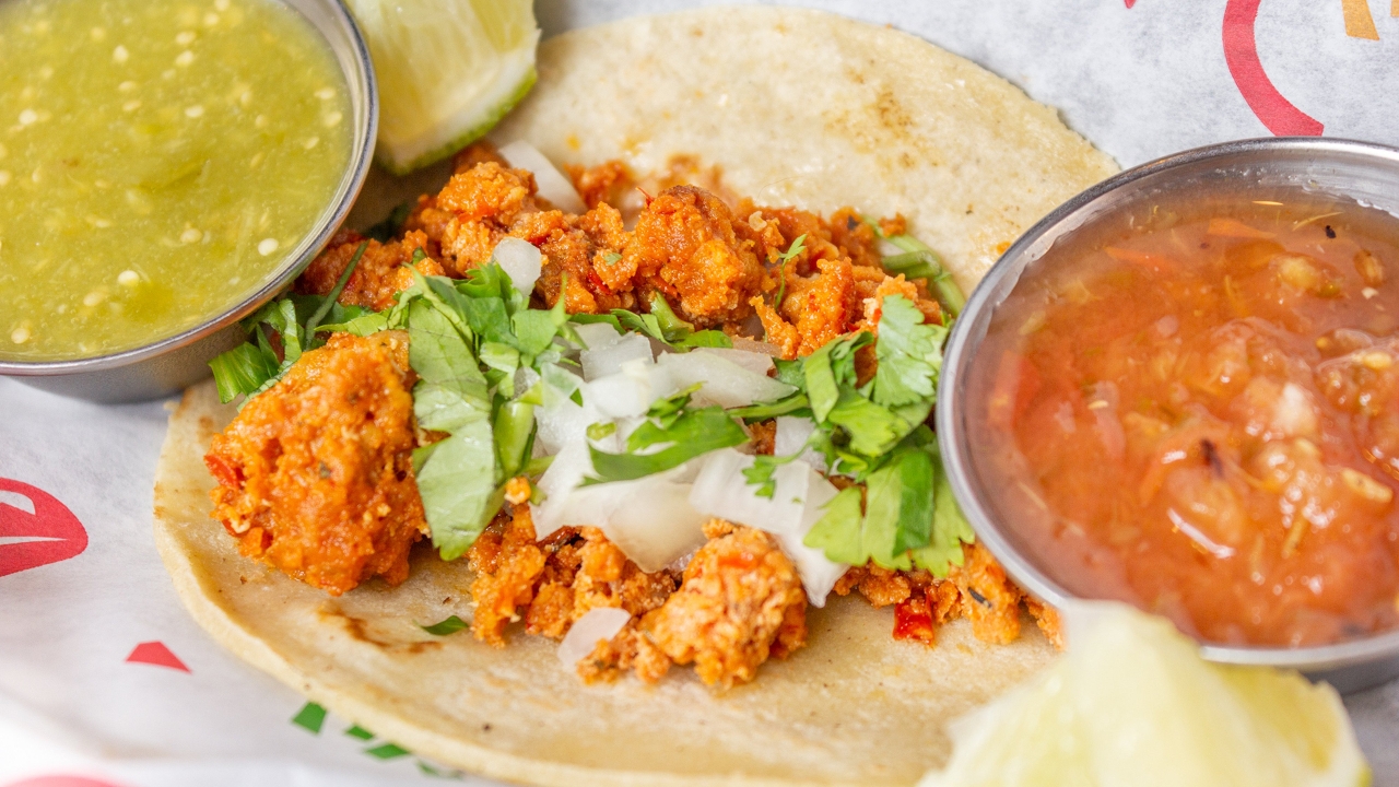 3 Tacos made with chorizo & scrambled eggs. Served with rice and refried beans. Salsa on side