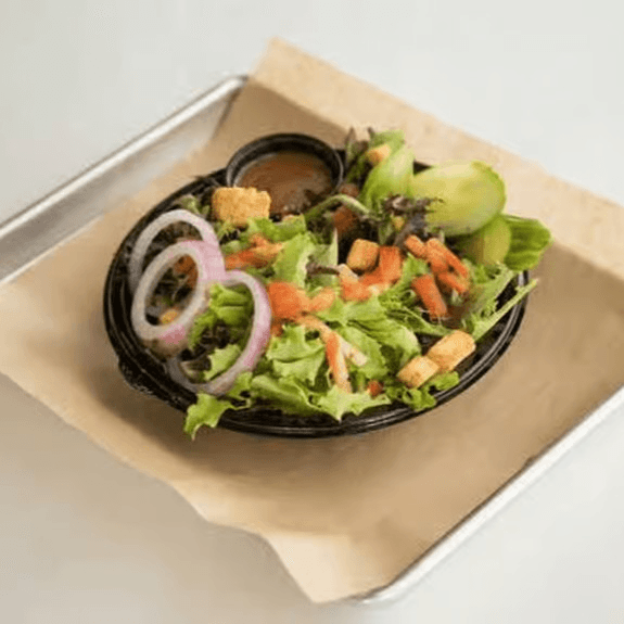 Lettuce, tomato, red onion, and garlic herb mayo on a multigrain bun (if vegan - no mayo).