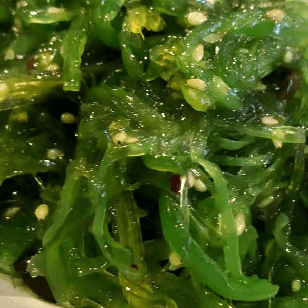 Marinated and chilled seaweed salad served in a sesame dressing