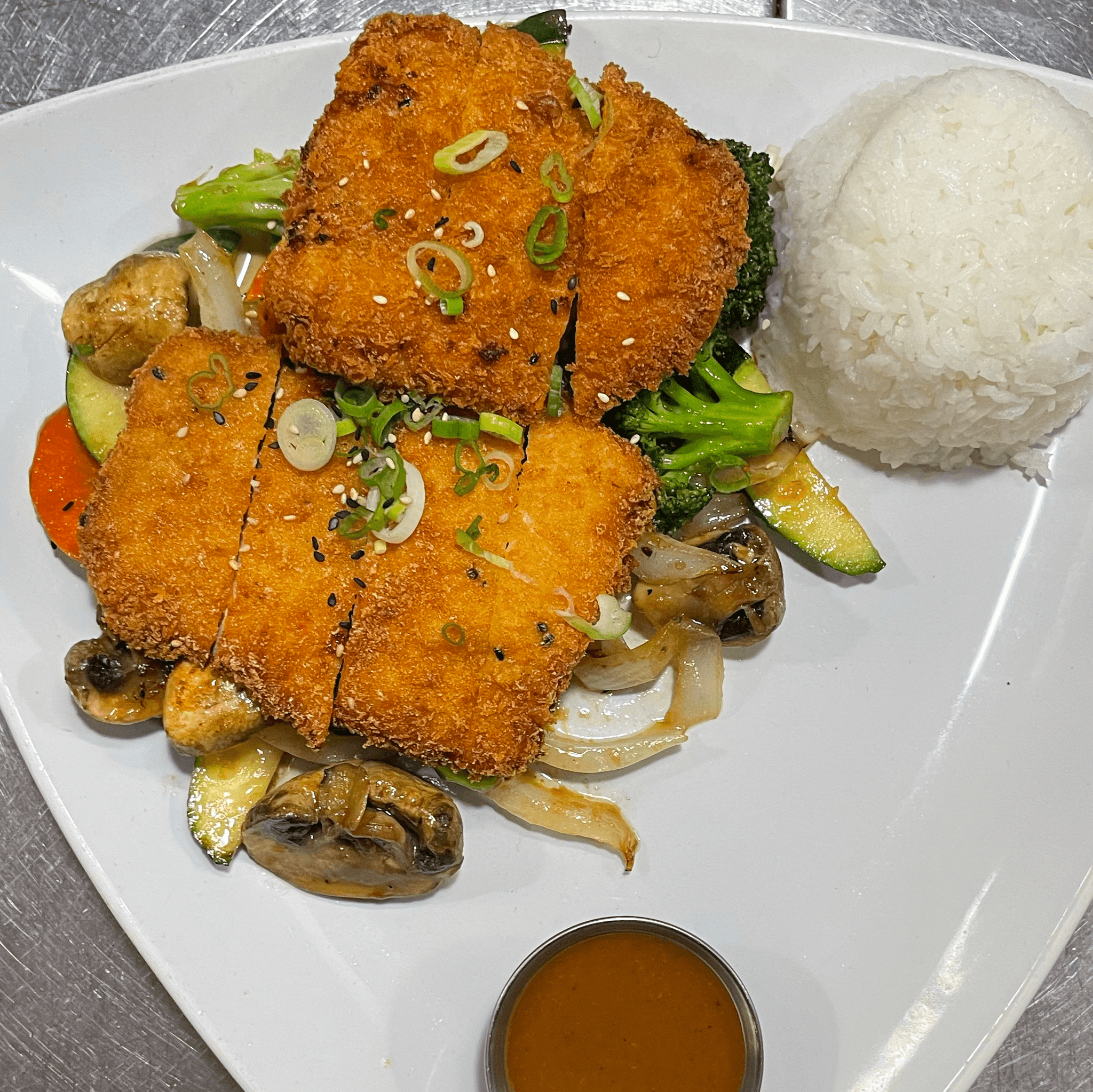 Served with side of white rice, panko, dipping sauce, or ketchup