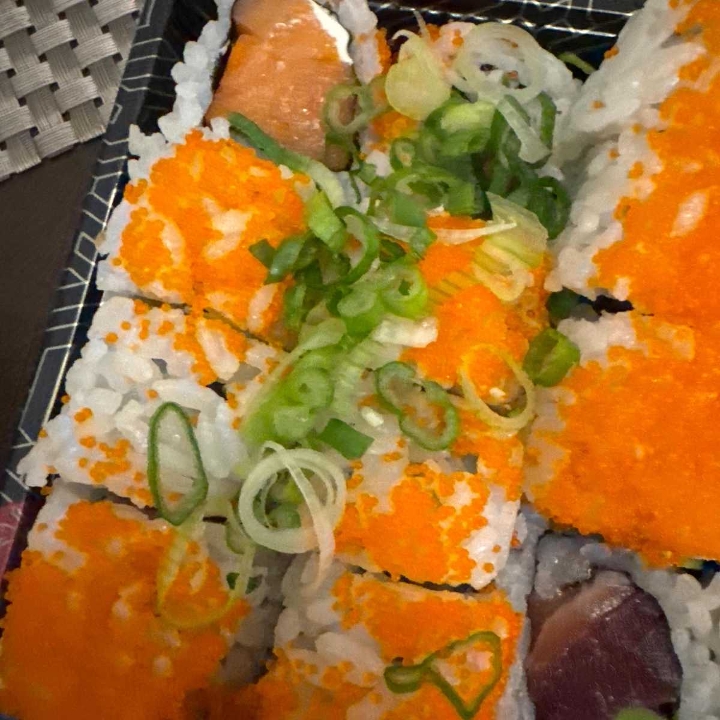 Salmon, tuna, avocado, pineapple, cilantro, red tobiko, sweet n' spicy jade sauce