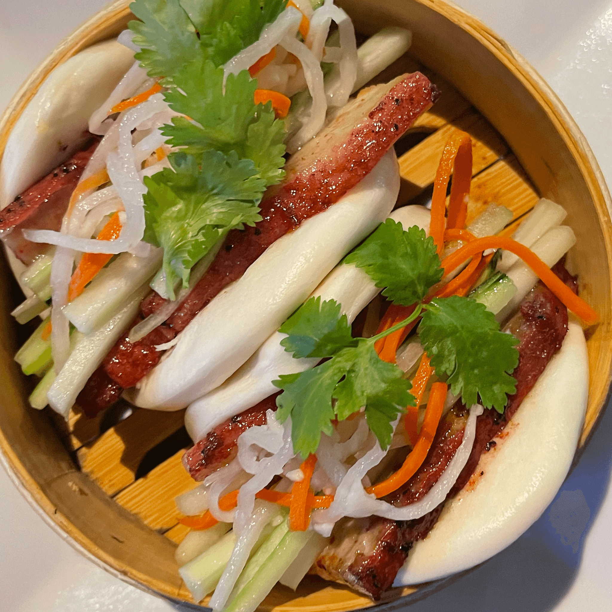 Pork Belly, pickled carrot & daikon, cucumber, cilantro, hoisin sauce, sriracha