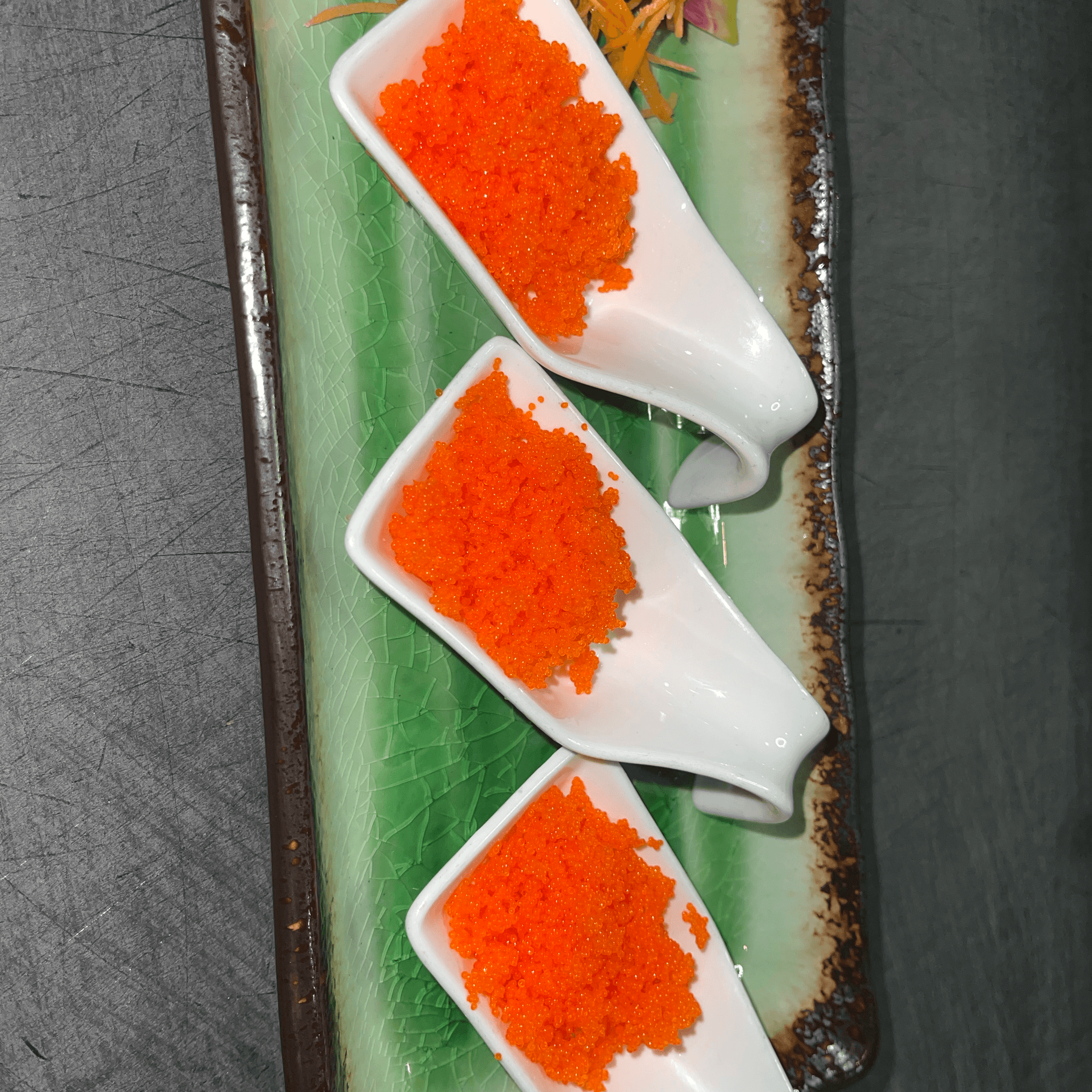 Tuna, salmon, cream cheese, avocado, smelt roe