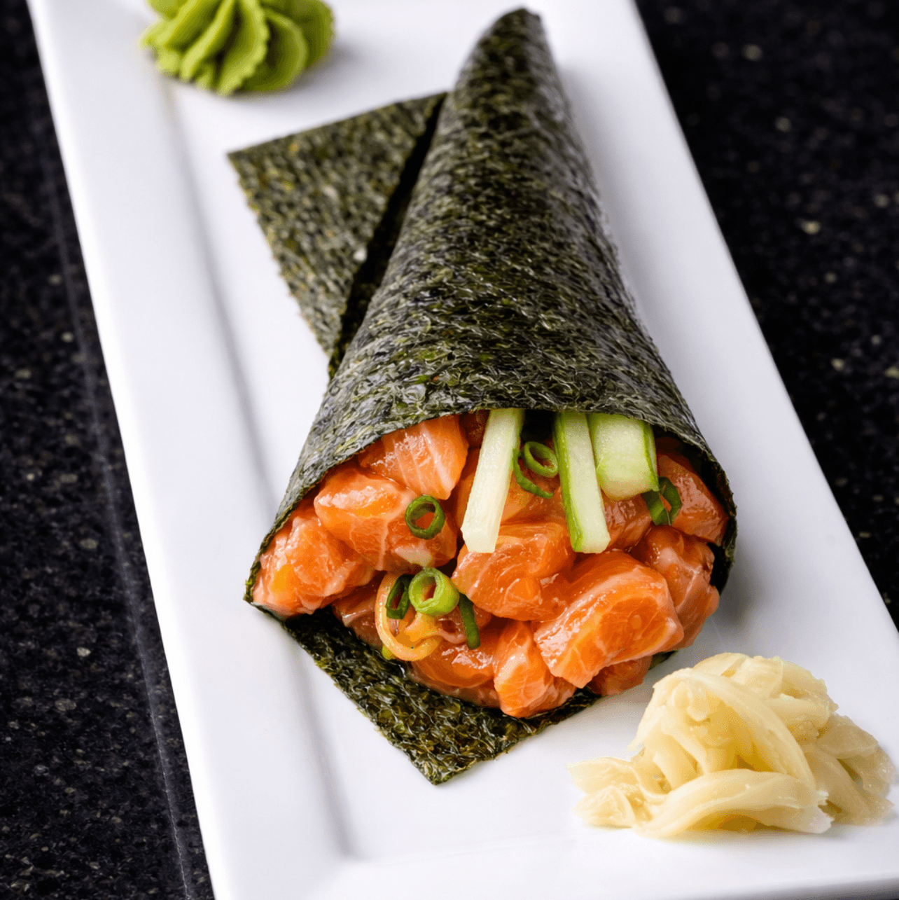 Salmon, atomic aioli, cucumber, scallions, smelt roe