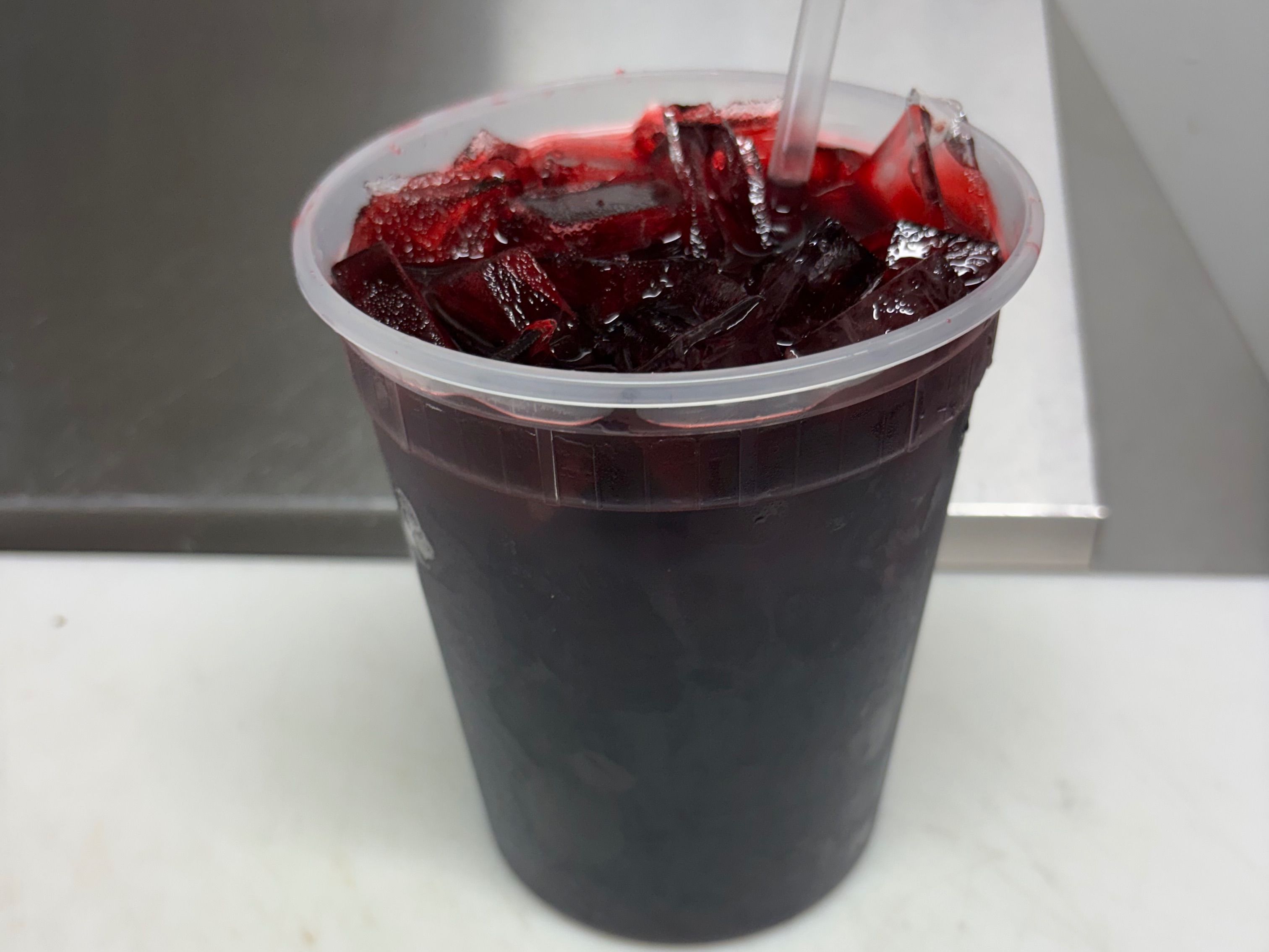 Large cold drink made with fresh pineapple and kiwi, water and sugar