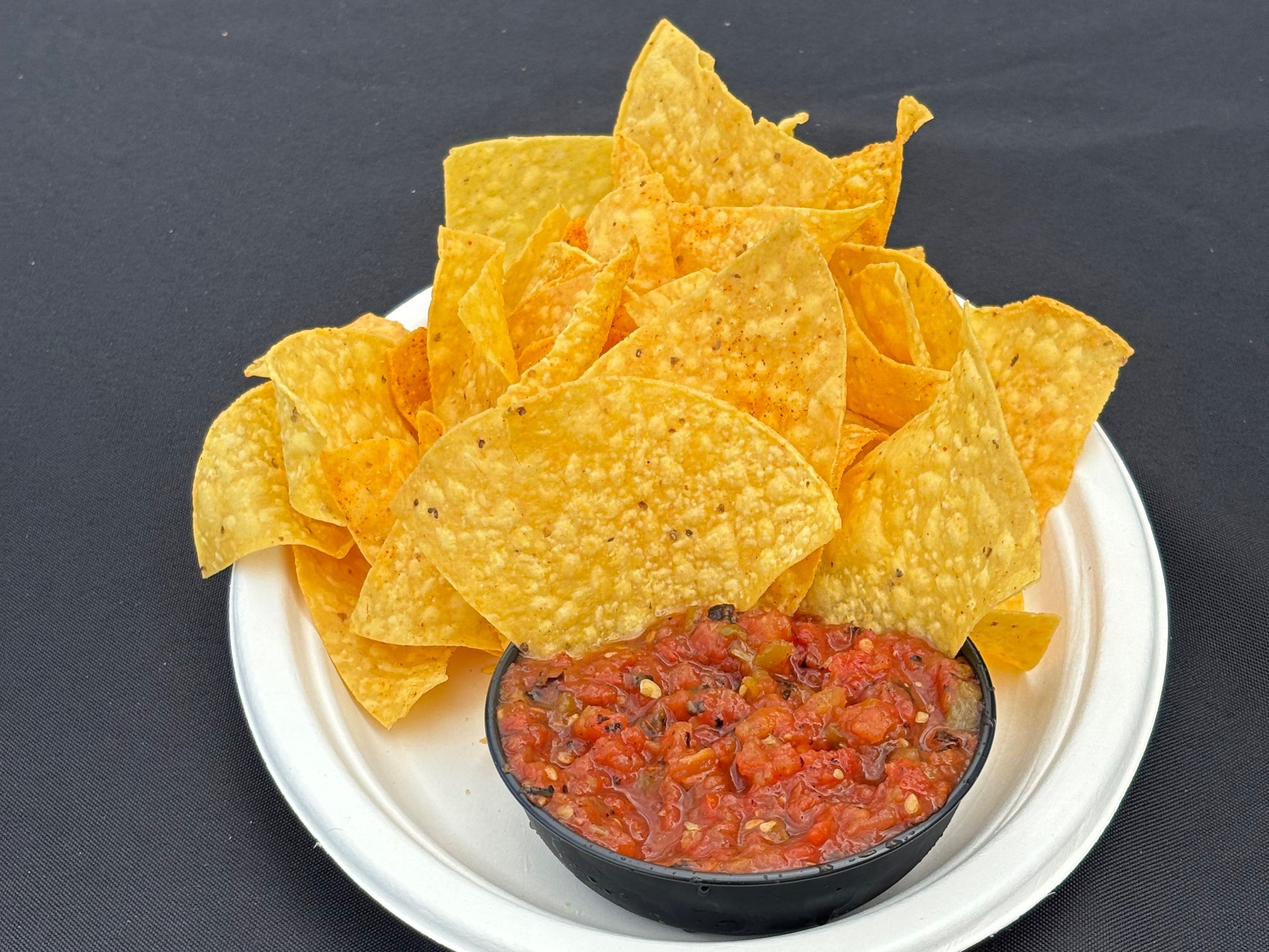 House made charred tomato and jalapeño salsa, house made corn chips. Large