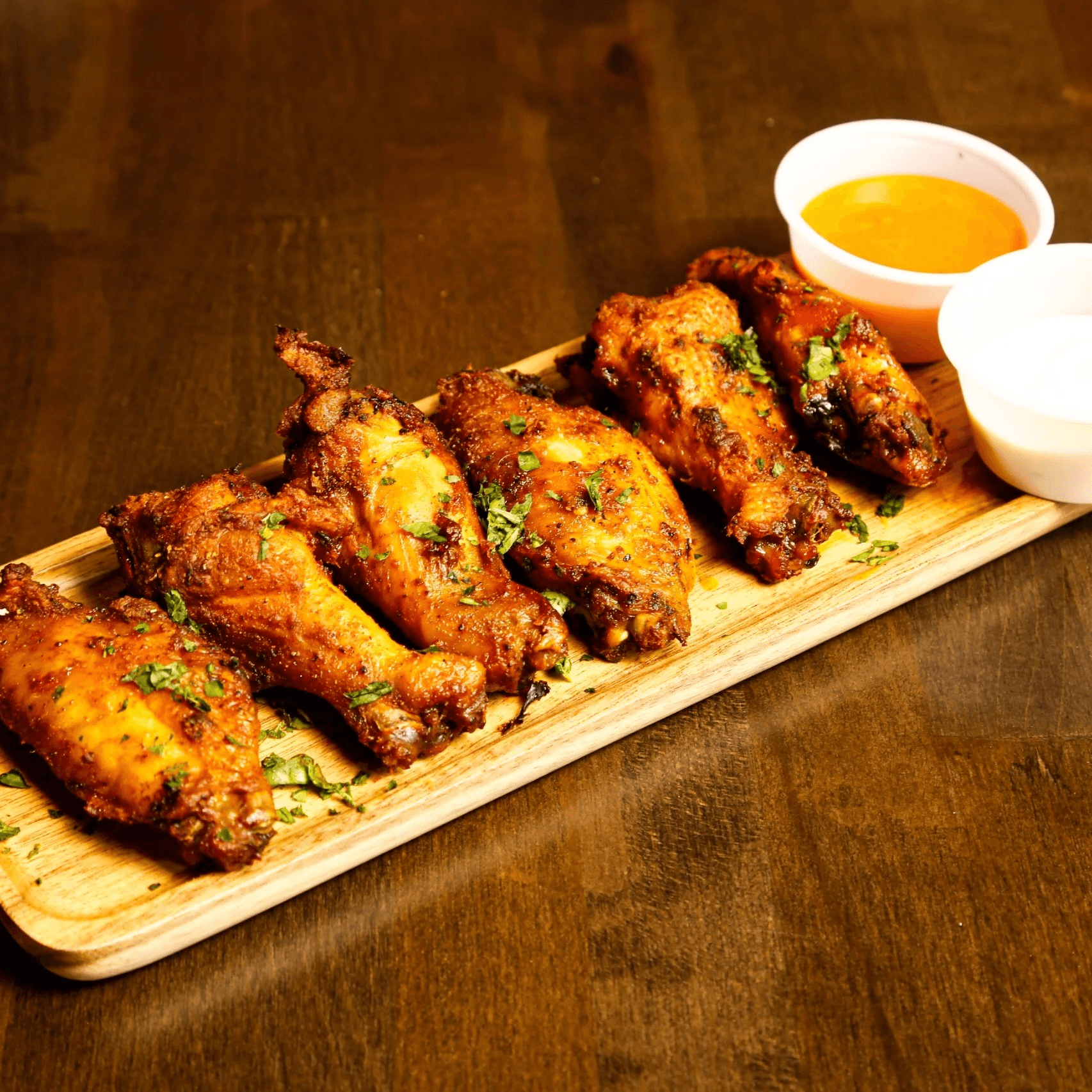 Homemade marinated for 24 hours and baked in our high heat pizza ovens. Low to no oil, crispy, tasty and healthy