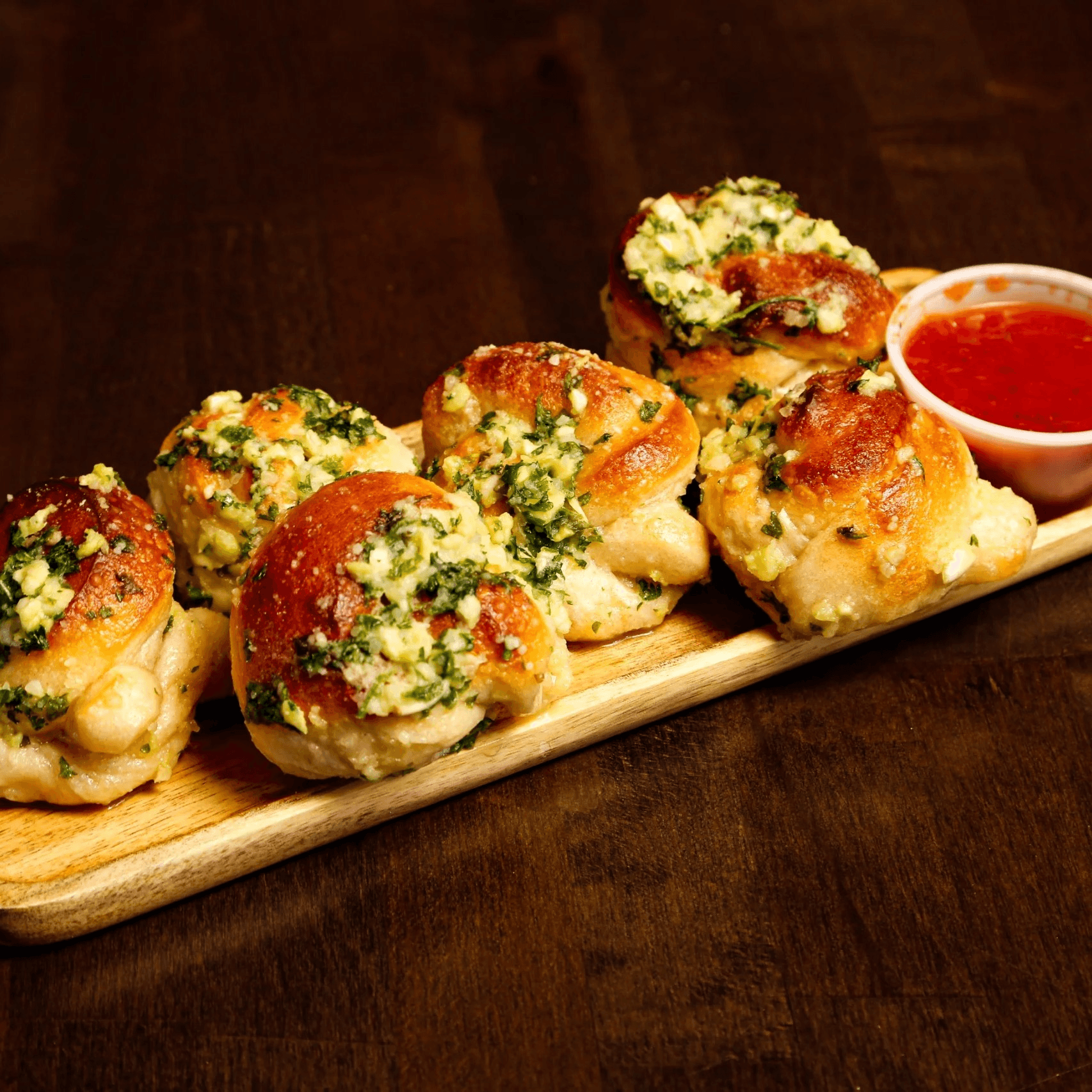 Freshly baked in house, dipped in garlic butter, parsley, Parmesan and olive oil