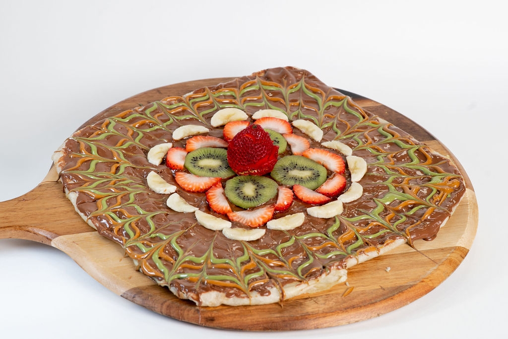 Authentic traditional layered dough like nothing you ever seen, crispy on the outside, soft on the inside, clay oven baked filled with Nutella & fruits