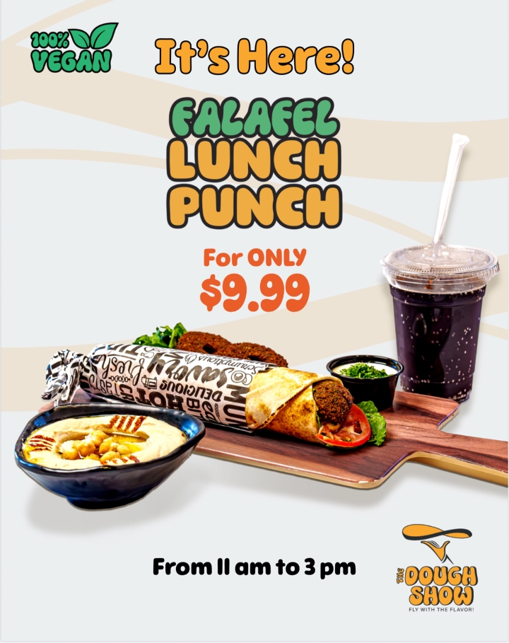 + 2 Extra Falafel Pieces + Creamy Hummus + Crunchy Coleslaw + Refreshing Soda