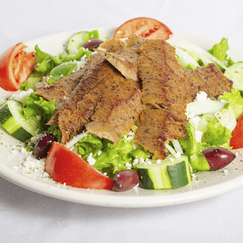 Featuring savory gyro meat, ripe tomatoes, and Kalamata olives for a taste of the Mediterranean.