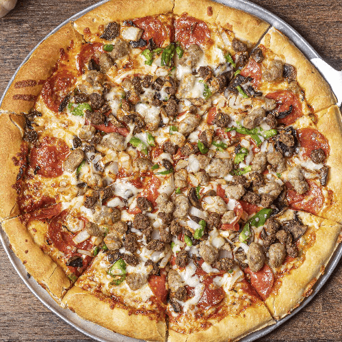 Includes sausage, meatball, pepperoni, onion, mushrooms, and bell peppers