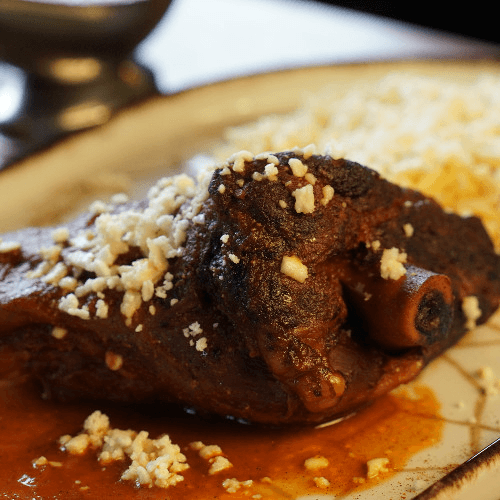 Succulent lamb shank braised and slowly simmered in a rich sauce of fresh tomatoes, garlic, herbs, and red wine. Topped with crumbled feta cheese and served over a bed of tender orzo for a delightful Mediterranean experience.