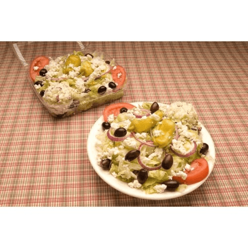 Our house lettuce blend, tomatoes, red onions, Greek peppers, kalamata olives, cucumbers, red potato salad, feta cheese, Greek dressing.