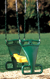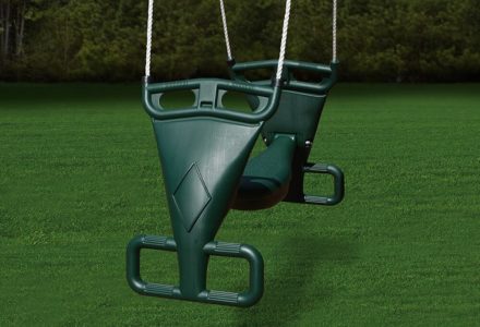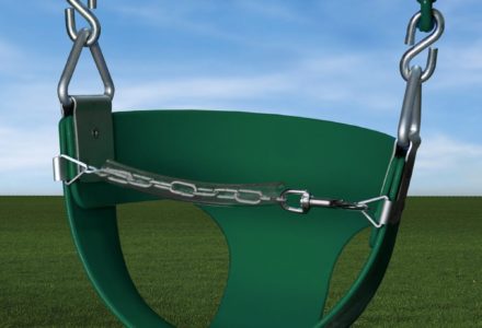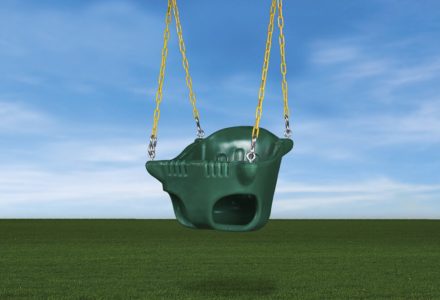 This solid design is great for super active toddlers and offers more protection when needed. Solid design Be sure to order spring clips for easy mounting Available only in green with yellow powder coated chains Height 15″ Length 16.5″ Width 16″ **FOR RESIDENTIAL USE ONLY**
