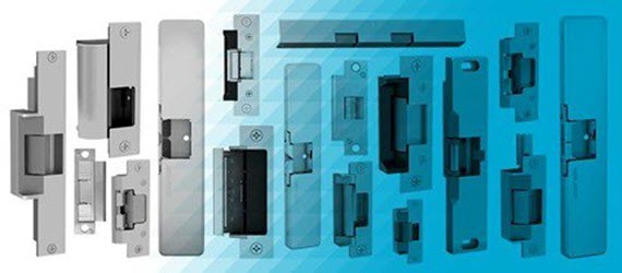 Electronic Locks Strikes Electronic locks are the preferred device for securing a door. These locks generally have a 1500lb holding force and are installed in the door frame. Door strikes have a gate that is released when credentials are presented allowing the door to open while the door handle is still locked. There are several advantages to using an electronic strike. These locks do not require additional forms of egress as the door lock is usually not changed. They also do not require a connection to the fire alarm and can be configured to be normally safe or secure depending on your specific needs. Magnetic Locks Maglocks are generally used when an electronic strike can not be used. These locks come with a holding force of 300lbs to 1200Lbs and weather proof models are also available. Electromagnetic locks hold doors shut by creating a magnetic bond between the device and it surface plate. When credentials are presented the circuit is opened thus releasing the door. Magnetic locks also require two forms of egress such as a motion sensor accompanied by a push to exit device and in many case must be tied into the customer fire panel for emergency release.