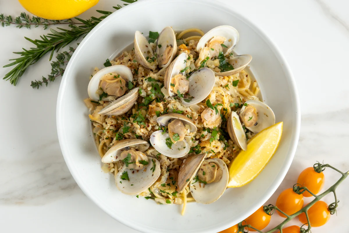 Spaghetti paired with little neck clams tossed in a light sauce of garlic, olive oil, white wine, baby clams, lemon juice, & a hint of Calabrian chili